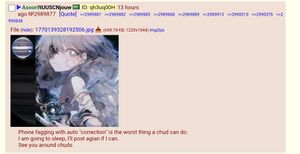 | > | Phone fagging with auto "correction" is the worst thing a chud can do.