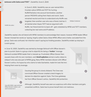The article contained "heavier themes," "psychology warfare," and "taboo-art" (drawing cartoon characters getting tortured). The post was such high-tier vantablack brimstone and so TOS-violating that the Fandom jannies nvked the entire wiki to stop the spread of the dust. GEEG.