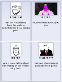 On February 15 2026, former schlog moderator named Suznetsov anonimously created a thread on Swinny that contained an image of cobson with a smoking pipe and text that said "I just sent shemmycucks bait and switch 'g ama". Later in same thread, Suznetsov began LARPing as Quote by hinting at being him, saying that he "quit botting as a form of shutting down splinters" (Quote was accused of doing so) and called sharty his site. The thread gained traction, with some believing that OP is Quote or another sharty staff member and some doubting or denying it. Eventually some soyteens spread the information about the swinny thread to sharty's IRC server, where actual Quote himself learned about it and denied that he posted in it. However, the thread kept getting replies and Quote actually posted in it, posting a screenshot of him being banned from swinny in IRC later. The swinny gained an unprecedented amount an activity for a few hours.