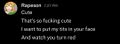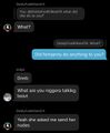 Femjanny (Powerword: "Vivian Snow") is a coal TikTok content creator, in the same vain as Qwaytriot even being friends with them, known for posting EPI and antimatter content in general of sharty things like Femquote and Femjanny and previously attentionwhoring in VCs on /soy/ and /pol/. She was doxxed and datamined by 'teens [1] for grooming a minor and making shota 'p. [2] She wants to become a man, [3] however she posted in a male-to-female thread once, [4] is into black men, [5] [6] and plays Euro Truck Simulator 2 [7]. As of late, she had recently made several threads on the Zarty about having problems with excessive gooning[8] and helping special ed kids[9]. Luckily, Bob, the co-admin of the Zarty, has banned her for being an underaged and annoying attenionwhore foid🗝️[10][11].