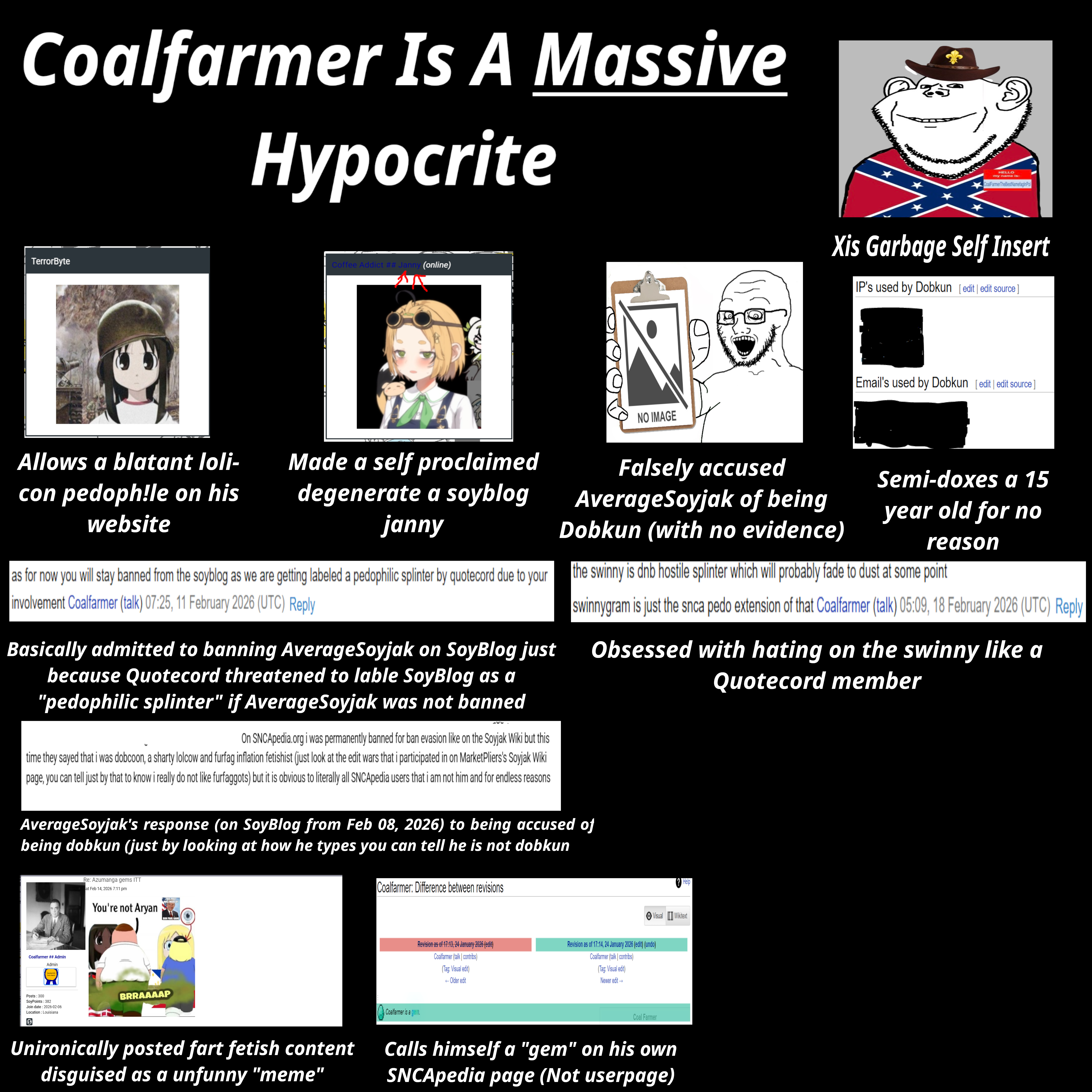 a toss' made by known pedophile dobkun to disparage coalfarmer and coffee addict with no evidence nor sources