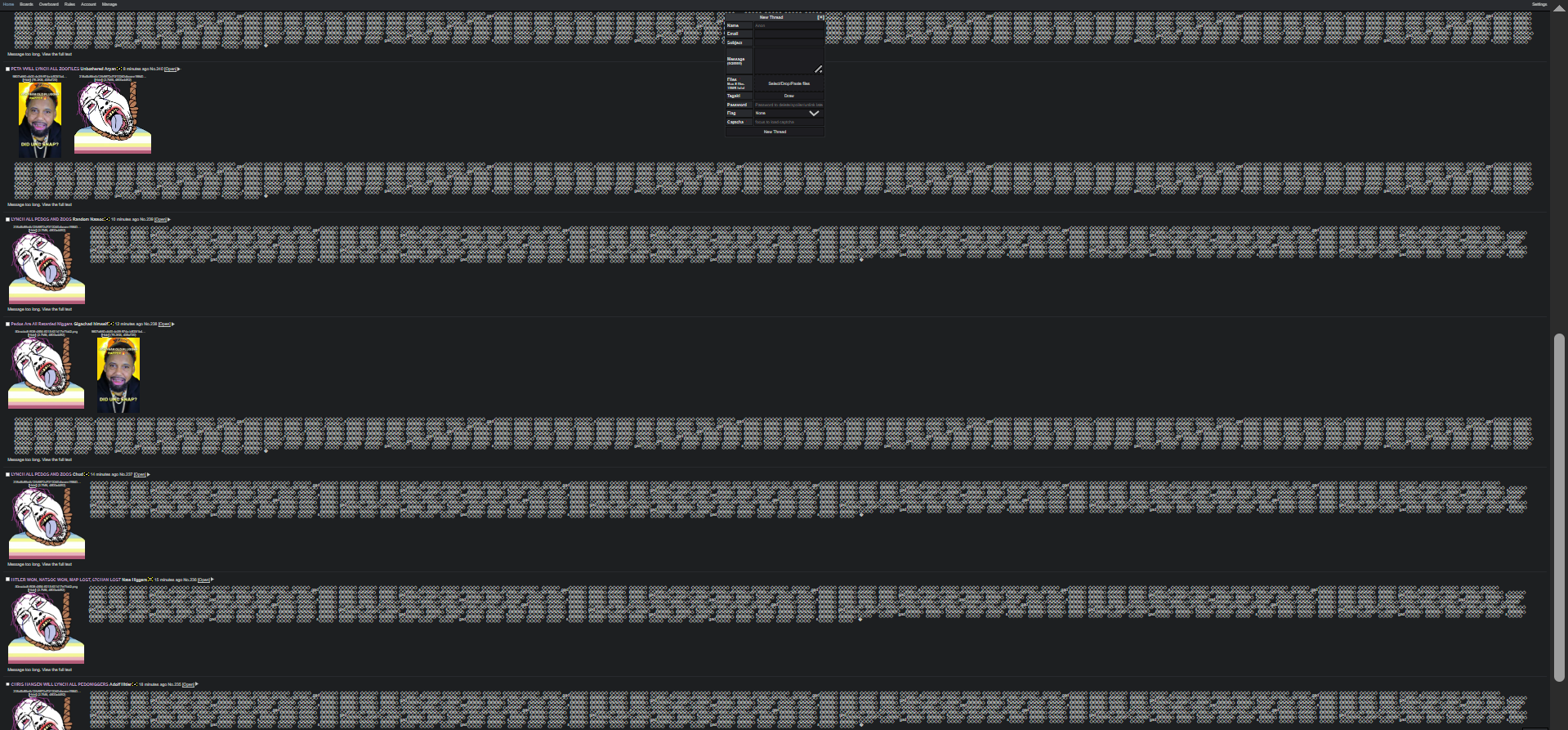 This image is a highly zoomed-out screenshot of a 67chan raid done by the sharty