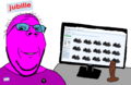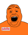 Jubille is usually represented by orange soyjaks, the trend started by Emerald and catching on.[3] A theory about Jubille's true identity is that he is actually an alt of Lolkek, as both are controversial 'ru admins and have similar tendencies. This hypothesis became popular after an anonymous user spammed a copypasta of it on Jubille related posts,[4] though somewhat unlikely, it would explain all the secrecy regarding Jubille's appointment to developer. However it is important to note that Lolkek's main account became an approver again but was later demodded after putting "build for bbc" on posts with kids in them,[5] which makes the Jubille is Lolkek theory far less likely.