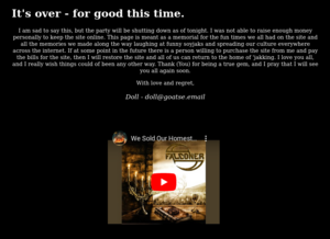 [edit | edit source]On August 20, the sharty briefly came back online with a new anonymous administrator, later dubbed "Chood". Due to 'P spam, images were later disabled and it was then shut down 4 hours later; but soyjak.in did get temporarily locked during these 4 hours the sharty came back.