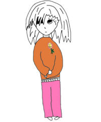 [edit | edit source]She has white hair, pale skin, dark eyes, notably the left eye is shadowed by her hair, orange sweater or shirt, pink jeans or trousers and shoes / barefoot. A teen pointed out that she also has a Scholar flower on top right of her sweater / shirt. Her first appearance was a quick sketch because the 'teen that saw her in his dream only remembered the easy things like her orange sweater and her shadow eye, it is possible that he missed a few details or not.