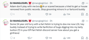 Hxdaro[4] also known as 0ppoxum is a 24 year old homosexual furnigger who is known for posting EPI content and much like Zuken gooning to furry shotacon, he also associates with soyjak.colony[5] as xe posts in xis xitter face of bu5t in xis xitter and obsessing over manglegirl so much at the point of posting a racist art xhe did years ago to everyone and trying to dox her[6] as well apparently being a janny on Fella Farms who larps as her. (Sound familiar?)