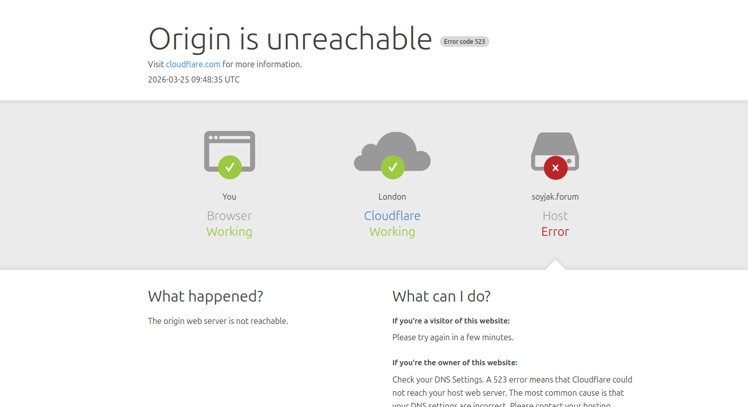 However as of March 25, 2026 the site went down again, displaying aCuckflare Error 523[11]