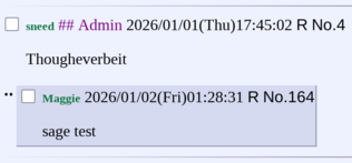 [edit | edit source]The 88th and 90th GETs on the textboard version on the site were "vve MUST post ascii sneeds" and ==sneedy==[2]