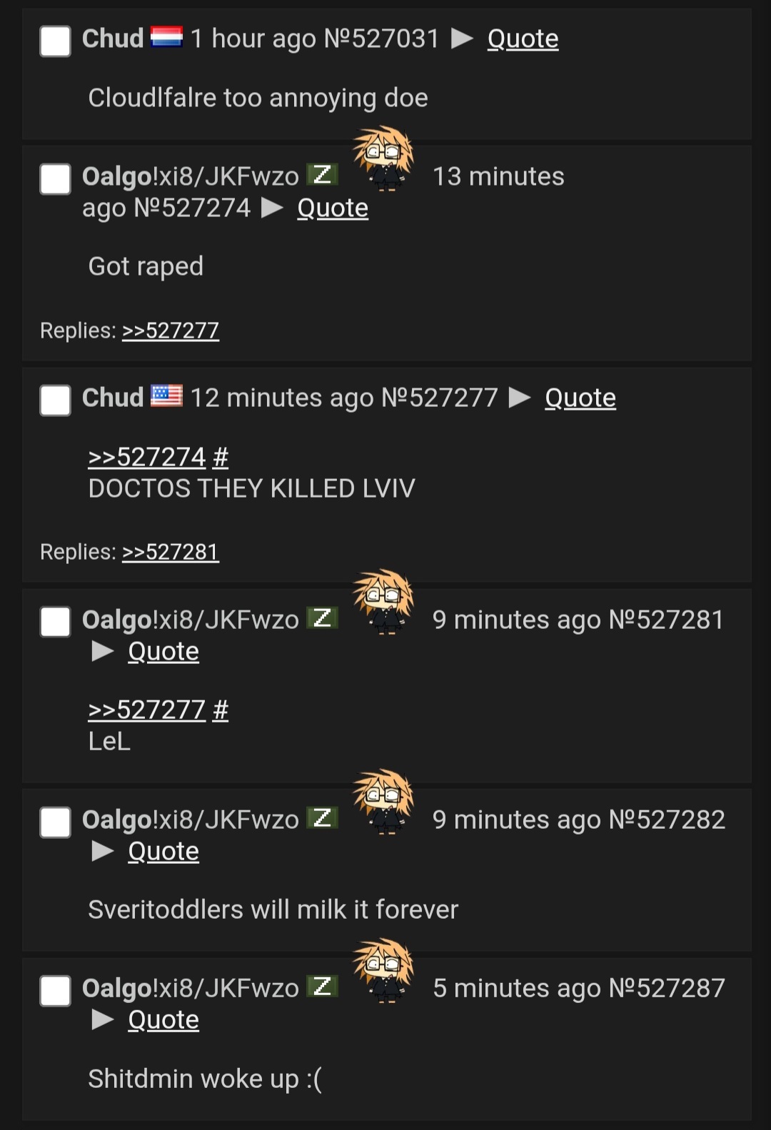 oalgo is a norulescuck telegramcuck who created the Narty and Kikepedia, and has given the ownership of the Narty to Jakker420 and apparently "leaving after the animal gore incident" and seems to not be involved in failltrollism anymore.