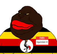 Revision as of 22:42, 13 November 2025 by Sawoot (talk | contribs) (Created page with "{{Infobox Person |image = 200px |years active=2025 |nationality=Ugandan |IAS?=Yes }} '''Ugandan-X''' was a fictional namefag who had a large amount of edits made of him and posted on the booru despite not being a real person. ==History== He originates from January of 2025 and was intended to be an obvious parody of Warrior-Z and the booru's constant namefag drama and slopjak culture. He is usually depicted with a shirt of the Ugandan flag, bla...")