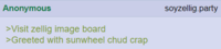 This is an archive of every banner used on soysphere splinters and outer internet imageboards. For a list and archive of all banners used on the sharty check the big 'ki's page