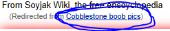 >making a redirect which is "Cobblestone boob pics"