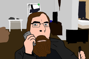 We see Ronnie wearing a black leather jacket sitting on a desk chair. Ronnie is intoxicated. There is a TV on the floor for some reason, and the entire place is painfully beige. He is arguing with someone on the phone, likely either his mom or girlfriend, saying variations "Is that how you're gonna talk to me now?", over and over. Finally, he hangs up, and the big moment is about to happen. Ronnie says his all-too-wellknown quote, "Hey guys, I guess that's it.", puts his single-shot rifle under his chin, and pulls the trigger. His face is mostly destroyed by the blast, and his head gets blown to the right. Then his ringtone, the 2019 mix of Samsung's default Over the Horizon, begins playing. Ronnie then stays there, dead.